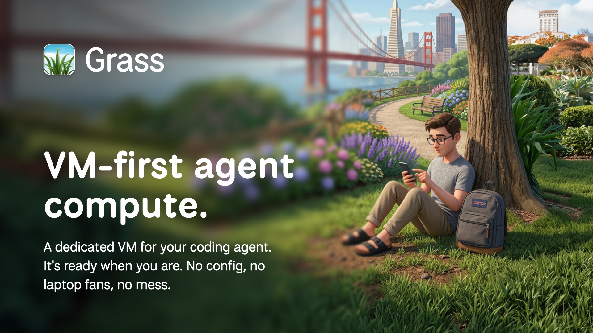 Grass offers a hassle-free, always-ready VM for AI coding agents that lets you work seamlessly across devices with no setup or laptop dependency.